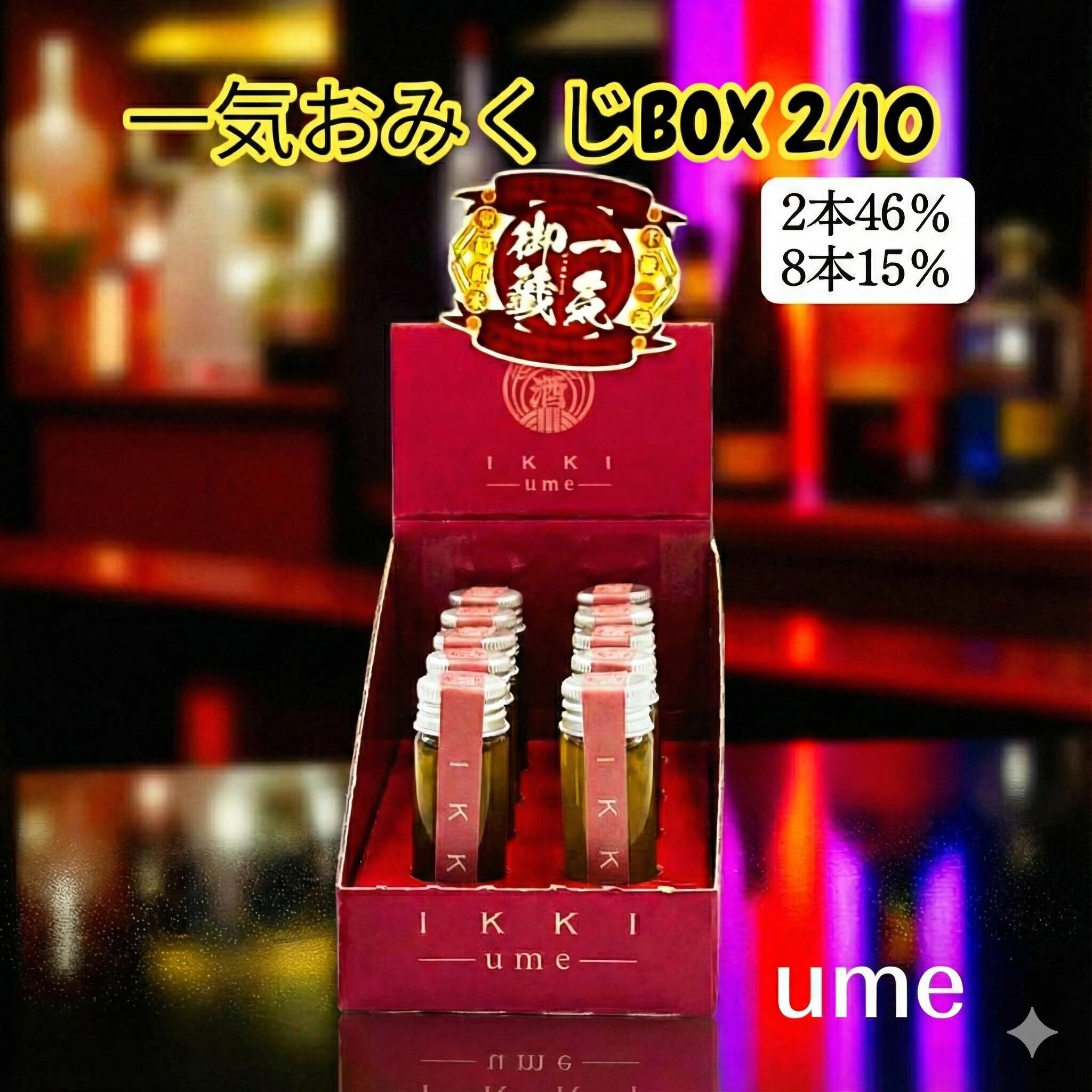 【箱売】【一気おみくじBOX SHOT】 15ml 一気 - 酒梅- 1箱(2本(42%) 8本(15%))シール付き〔長崎〕 | ikkitokyo